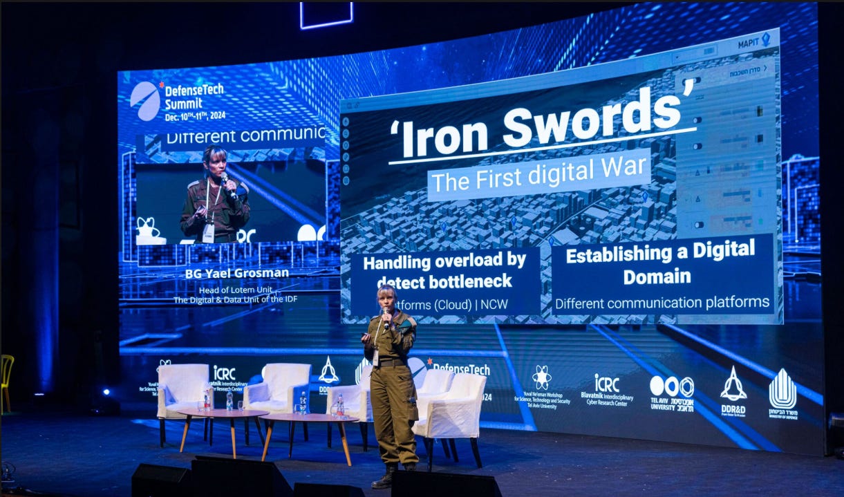 [A speaker at the DefenseTech Summit at Tel Aviv University, December 10, 2024]