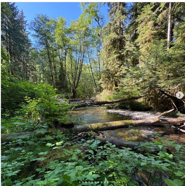 He shows me this riparian floodplain near the Upper Little Lobster Creek where he and his crew of volunteers have planted conifers, including cedars, and other plants to help revitalize the power of those trees to hold in soil. When the deciduous alders age out (around 60 years), they have a tendency to fall. Conifers live longer and they too will fall and act as natural “damming structures” to replicate what a natural stream should be: a haven for salmon and other aquatic species.