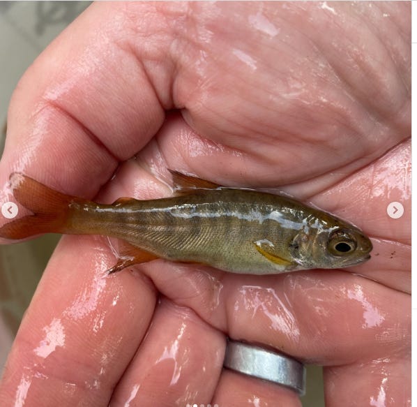 His job with MCWC — promoting freshwater and coastal fish conservation — is one-part grant writer, one-part field expert, one-part people manager, one-part public engagement/relationships impresario. He told me that he goes to landowners with those streams, creeks and rivers run through their properties in order to find ways to encourage stream health and restoration mitigation.