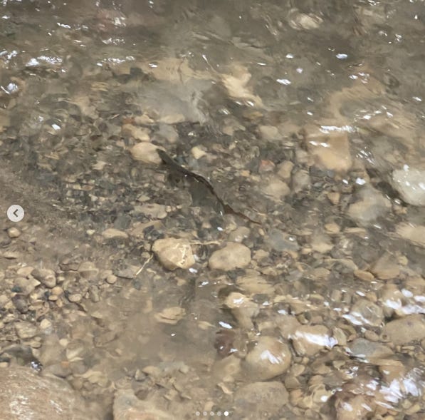 I jump into some “ponding” water just below one of the crisscross tree structures Evan and his volunteers had dropped into this moving water refugia, Little Lobster Creek. I was presented with nice stretches of fine sand and cul-de-sacs of great pebble beds, perfect habitat for salmon redds. Hayduk showed me fresh water mussels. Crayfish were scrambling in the shallows piercing the shadows underwater.