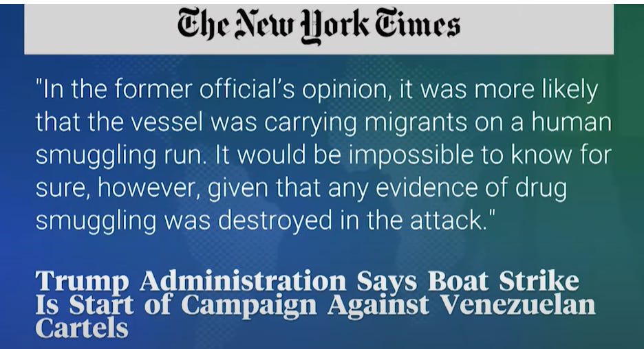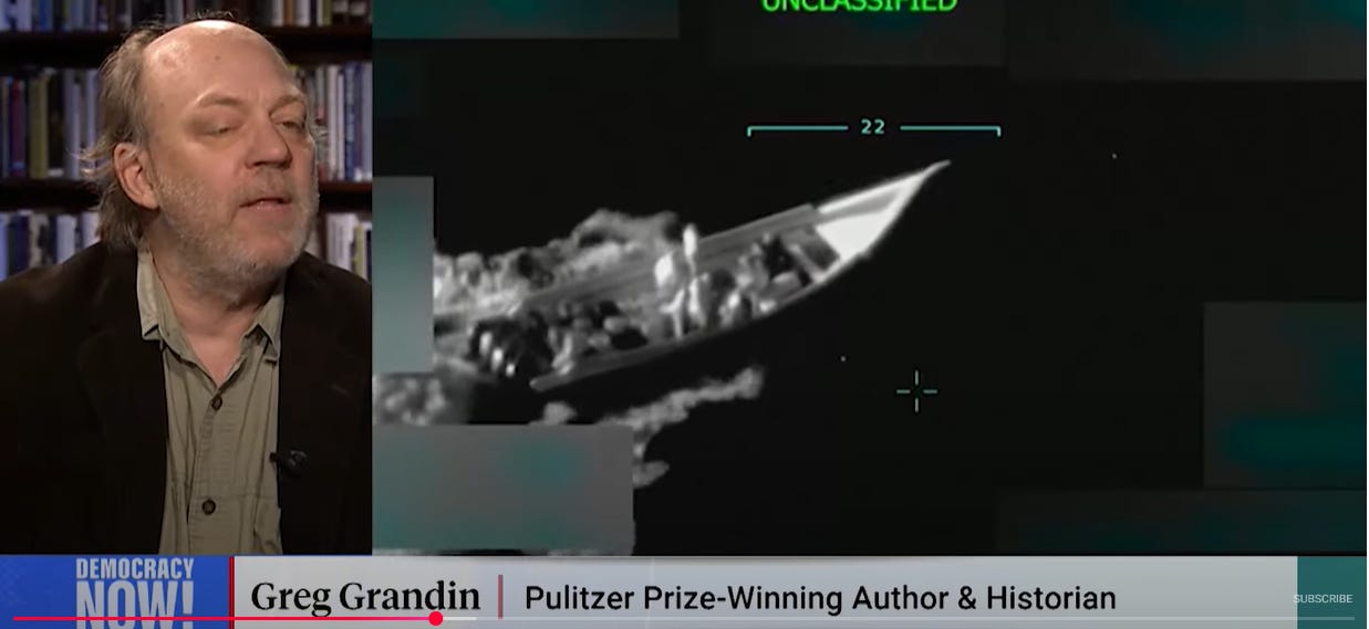 The cunt is proud of his murders. Unfortunately, more Jewish Yammering from Amy Goodman and this fucking celebrity, acclaimed historian Greg Grandin “joins us to discuss the Trump administration’s attack on an alleged drug-smuggling boat in international waters, which killed 11 people earlier this week. President Trump and other senior officials have claimed without evidence that the boat was carrying narcotics from Venezuela to the United States and was operated by the gang Tren de Aragua, which the U.S. has designated a terrorist organization.”
