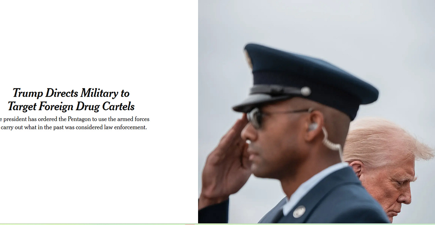 Oh, these tired fucking fake balanced and neutral/neutered journalists. The headline says it all: Cartels Are Bad But They’re Not ‘Terrorists.’ This Is Mission Creep — Trump using the military to solve every problem is a backward step. Wes J. Bryant