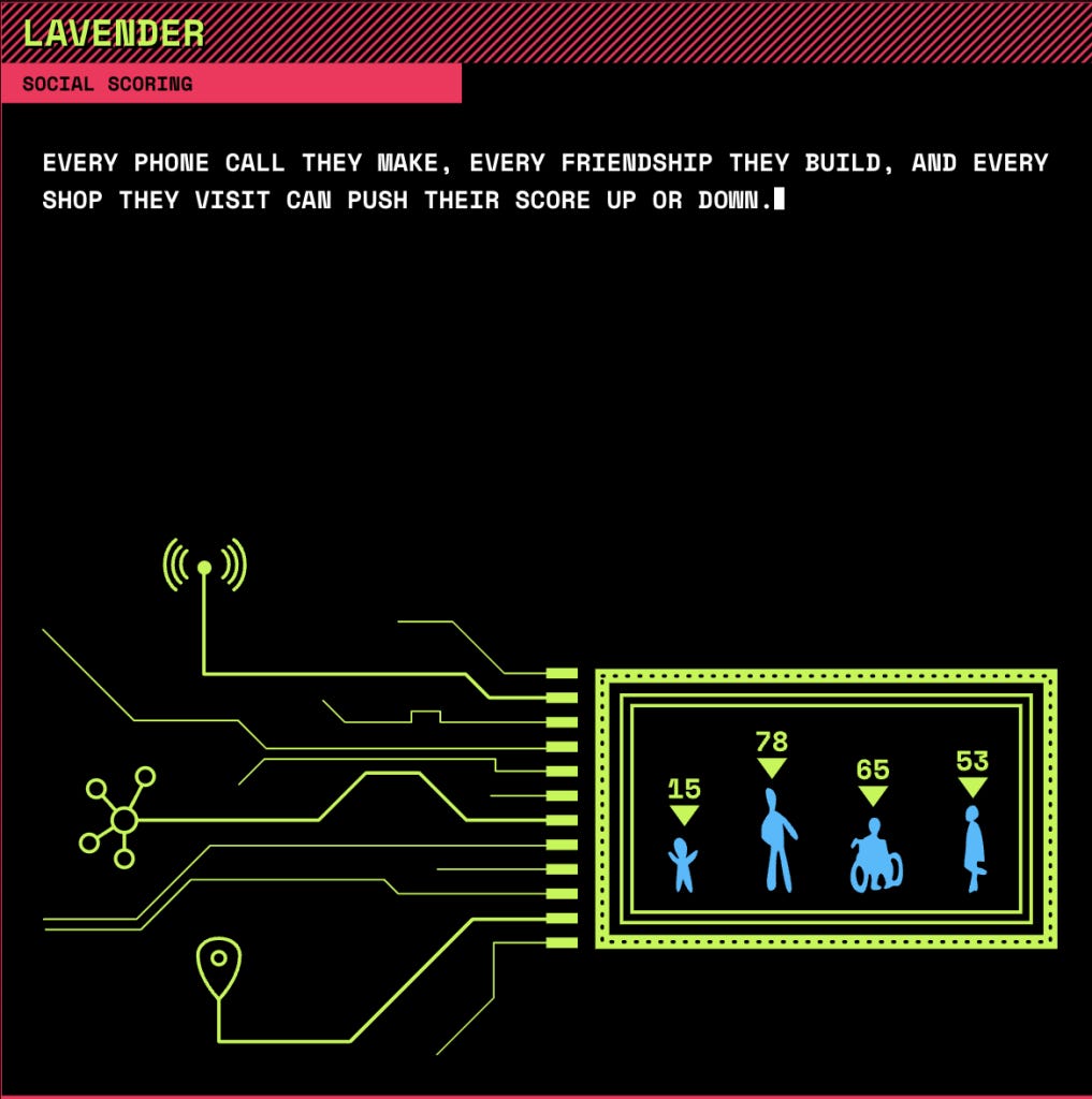 In response to the news that the Israeli Army was using the Lavender decision support system to generate, and subsequently strike, human targets in Gaza, Visualizing Palestine created their Stop KillerAI story. Visualizing Palestine is an organisation which uses data and research to visually communicate Palestinian experiences to provoke narrative change. Their Stop Killer AI story demonstrates how the mass surveillance apparatus that touches every aspect of Palestinian life had been weaponised in a new, and especially lethal way. The scroll-story merges interactive graphics and research to create a compelling online experience that demystifies how Lavender operates and how the Israeli army used it to enable and justify the mass killing of Palestinians civilians in Gaza.
