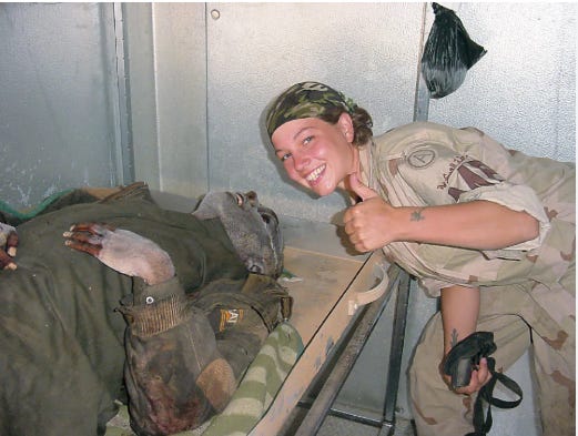 This week’s New Yorker features an astonishing profile of Sabrina Harman, “the woman behind the camera at Abu Ghraib.” Harman took hundreds of photos documenting the abuse of Iraqi prisoners—some showing her posing with dead prisoners, flashing a winning smile and a thumbs up. Her photographs were the primary evidence used in the courts-martial of several soldiers in her unit, including herself.