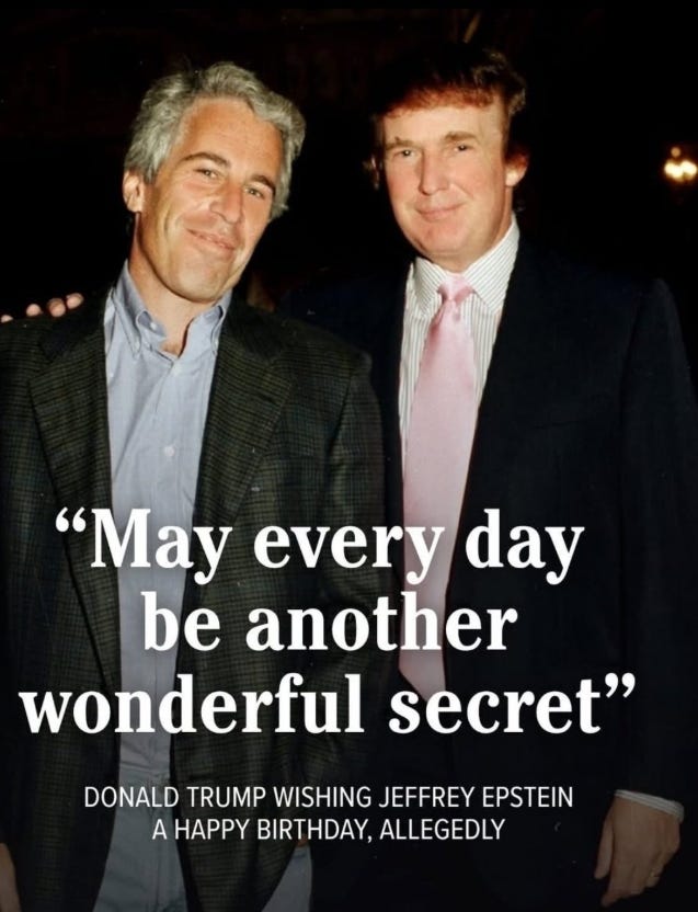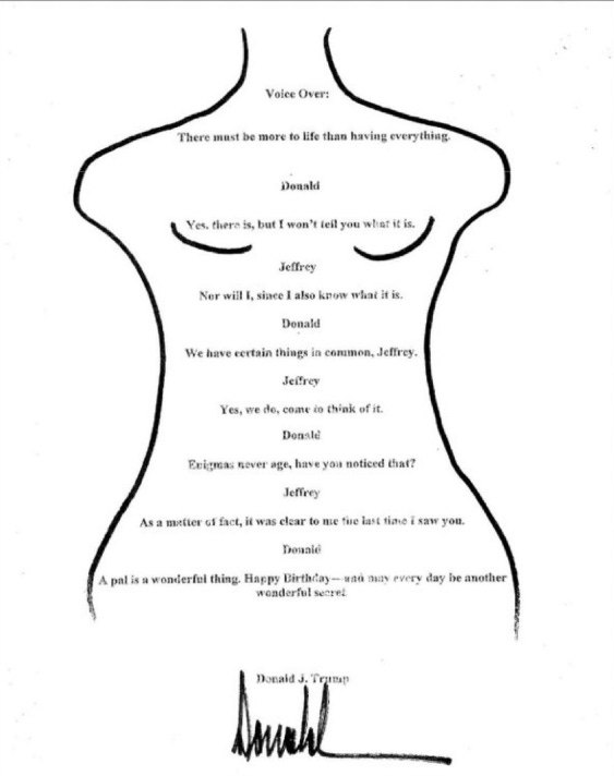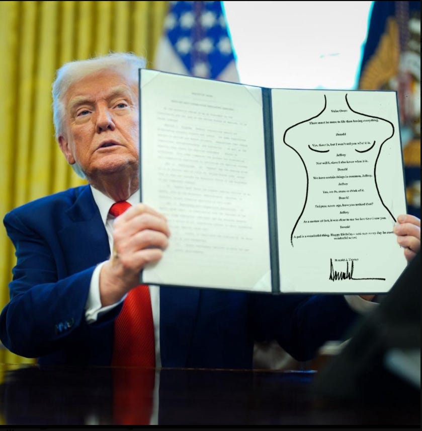 And yet—his creepy sketch shows up in Epstein’s book, signed by him. Trump’s defense? “I don’t draw.” The evidence? He drew.