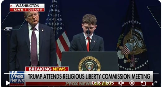 12-year-old boy who fought back against his school for pushing a book about changing genders speaks alongside President Trump at the Museum of the Bible: