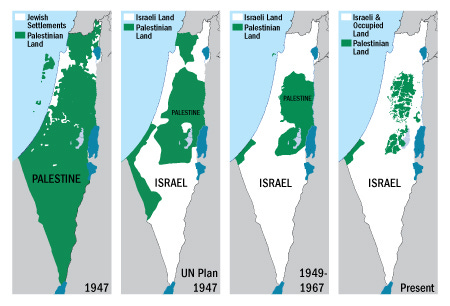 Americans have been complicit in the death and destruction of Palestine for 78 years. These maps show the Israeli-American dismemberment of Palestine between 1947 and today. Palestine is the green area.