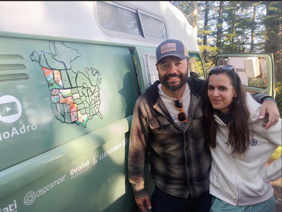 Pablo and Gloria, today, in Oregon, from Spain, taking this 1977 VW they bought and retrofitted in Oaxaca through those states — seem them, including two provinces in Klanada?
