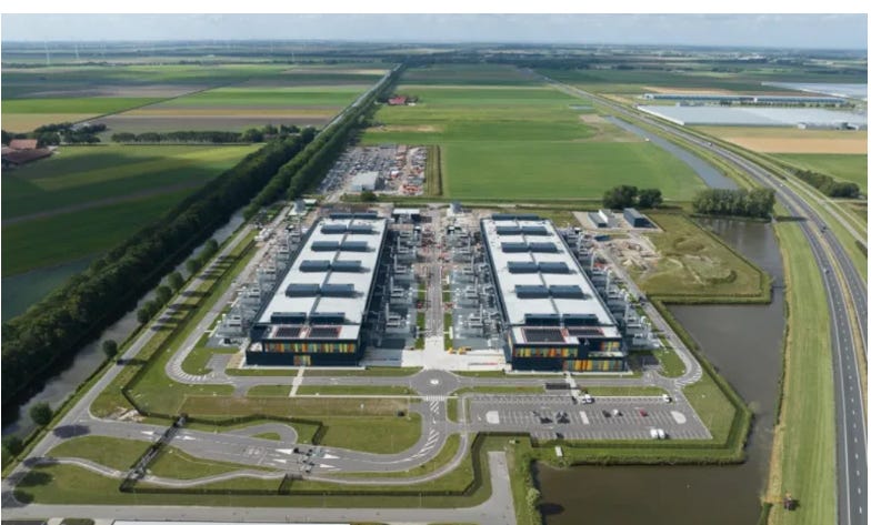 The company plans construction of six large buildings to be leased to major tech companies and a power plant to supply at some of the 200 megawatts to 900 megawatts of electricity those tenants will need.