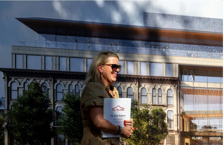 “Personally, I would love to see the Alamo become a beacon for historical reconciliation and a place that brings people together versus tearing them apart,” wrote Rogers, who was serving as the Alamo Trust’s executive director at the time, “but politically that may not be possible at this time.”