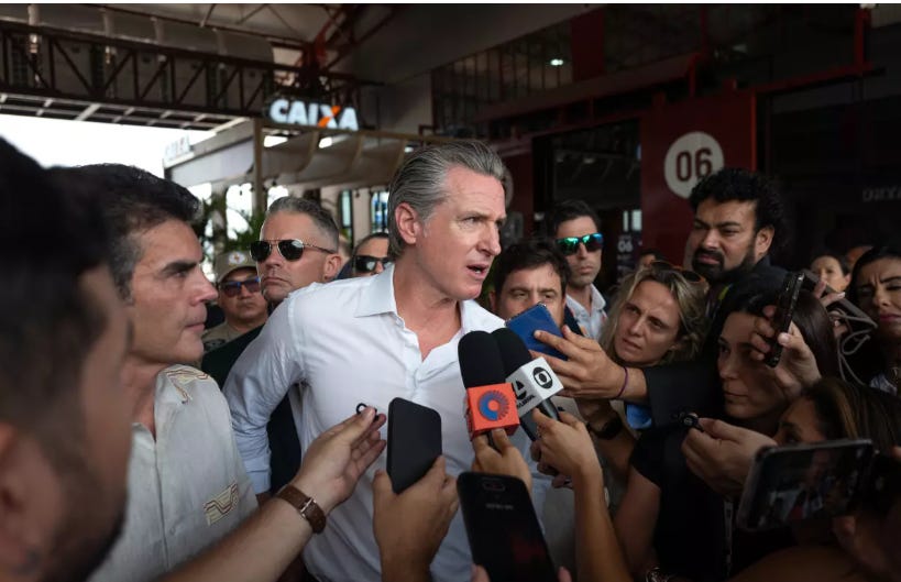 At the United Nations climate summit in Brazil, Gov. Gavin Newsom emphasized California’s role as the world’s fourth-largest economy and touted the state’s leadership in artificial intelligence, saying the state “dominates” in AI while stressing that he is “deeply mindful” of the energy and water implications of technological innovation and entrepreneurial growth.