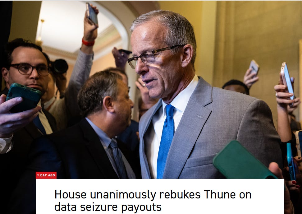 The House unanimously voted 426-0 Wednesday night to claw back language in last week’s government funding bill that could award some GOP senators hundreds of thousands of dollars in damages for having their phone records unknowingly obtained by former special counsel Jack Smith.