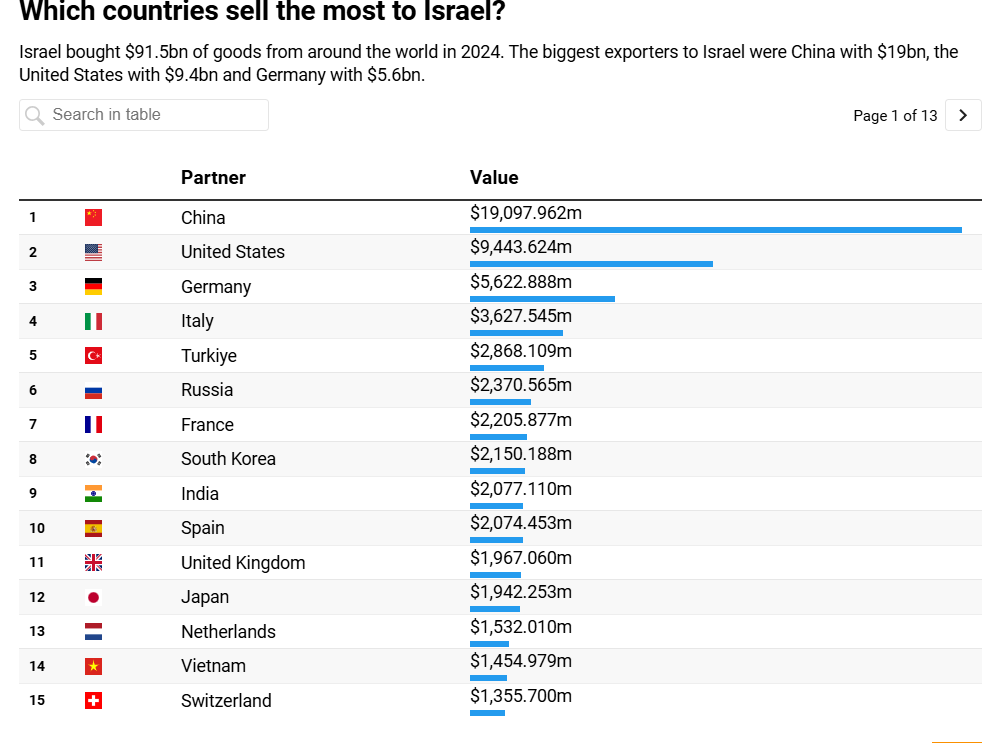 Some of Israel’s top imports include: