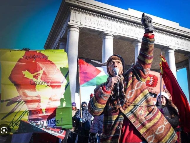 “Thanksgiving day is a reminder of the genocide of millions of Native people, the theft of Native lands, and the relentless assault on Native culture. Participants in National Day of Mourning honor Native ancestors and the struggles of Native peoples to survive today. It is a day of remembrance and spiritual connection as well as a protest of the racism and oppression which Native Americans continue to experience.”
