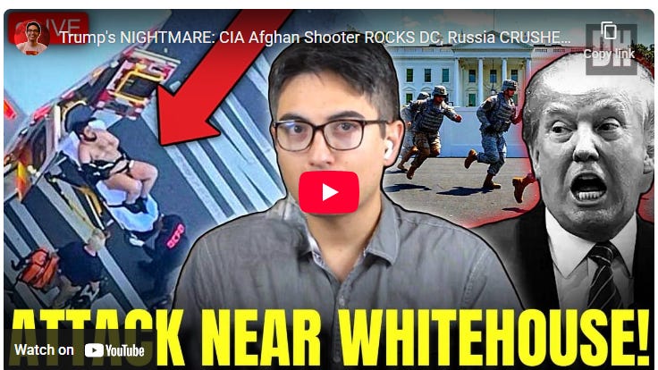 Danny — Join me LIVE NOVEMBER 27th today 5pm eastern 2pm pacific and 10pm London! In this special Thanksgiving live show, I break down the DC national guard shooting which has tracks going to the CIA. PLUS US/NATO sabotage of Trump’s “peace plan”, Putin’s latest answer and MORE!