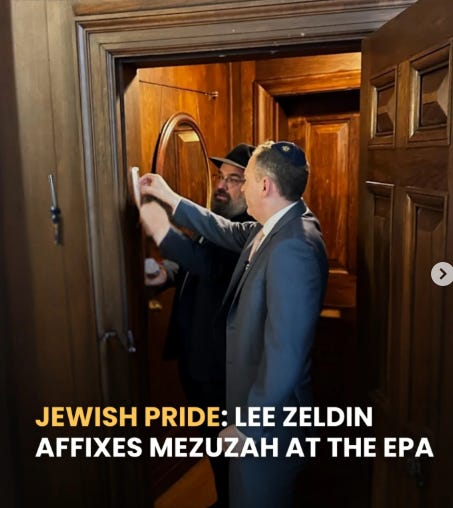 - Mezuzah Ceremony at the EPA: As EPA Administrator, Zeldin was the first Jewish person to hold the position and marked the occasion by having Rabbi Levi Shemtov inscribe a mezuzah for his office.