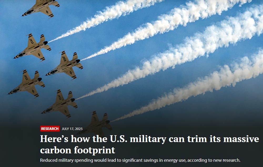 “You have to count it,” Crawford says. “Jet fuel is the biggest greenhouse gas from the military.”