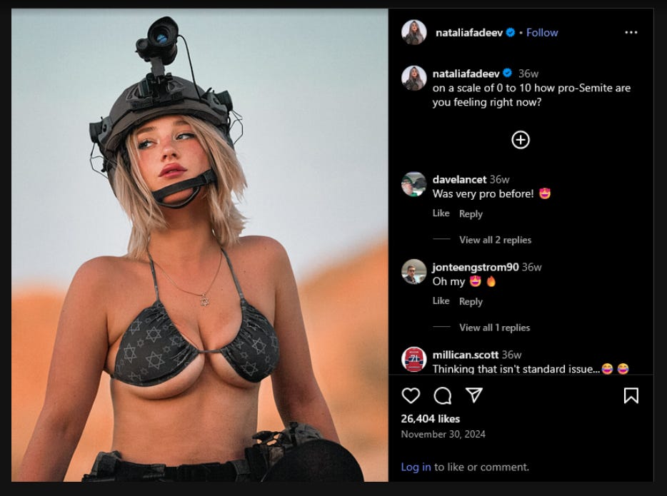 Amid an ongoing assault on its neighbors, the Israeli Defense Forces (IDF) is attempting to improve its image by posting highly sexually suggestive content featuring its soldiers, changing the prevailing emotion of onlookers from outrage to lust.