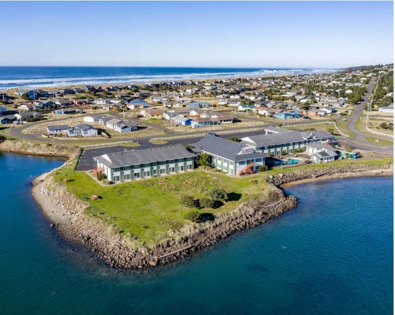 My fucking itwn, Waldport, OR: Giant Alsi Resort offers a range of amenities for a comfortable stay, including an outdoor seasonal pool and a daily continental breakfast. For outdoor activities, guests have access to picnic tables and fire pits with views of Alsea Bay. The resort also features a large parking lot suitable for boats, big trucks, and buses.
