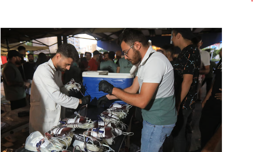 [Medics collect blood donations in Beirut’s southern suburb on 17 September 2024, after explosions hit locations in several Hezbollah strongholds around Lebanon amid ongoing cross-border tensions between Israel and Hezbollah fighters. Hundreds of pagers used by Hezbollah members exploded across Lebanon Tuesday, killing at least eight people and wounding Tehran’s ambassador in Beirut in blasts the Iran-backed militant group blamed on Israel.]