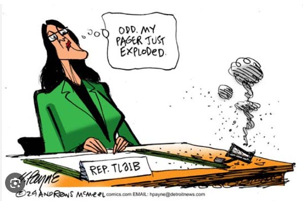 Rashida Tlaib, the Palestinian American congresswoman, has accused a political cartoonist of racism after he depicted her next to a pager exploding days after such devices blew up across Lebanon in what the Arab country has said was an attack by Israel.