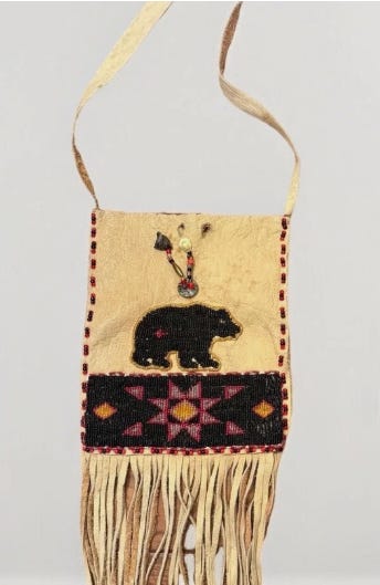 I sent my daughter a Lakota beaded leather bag, to shoulder, small enough for poems, sage, small rocks and bones and, well, memories: