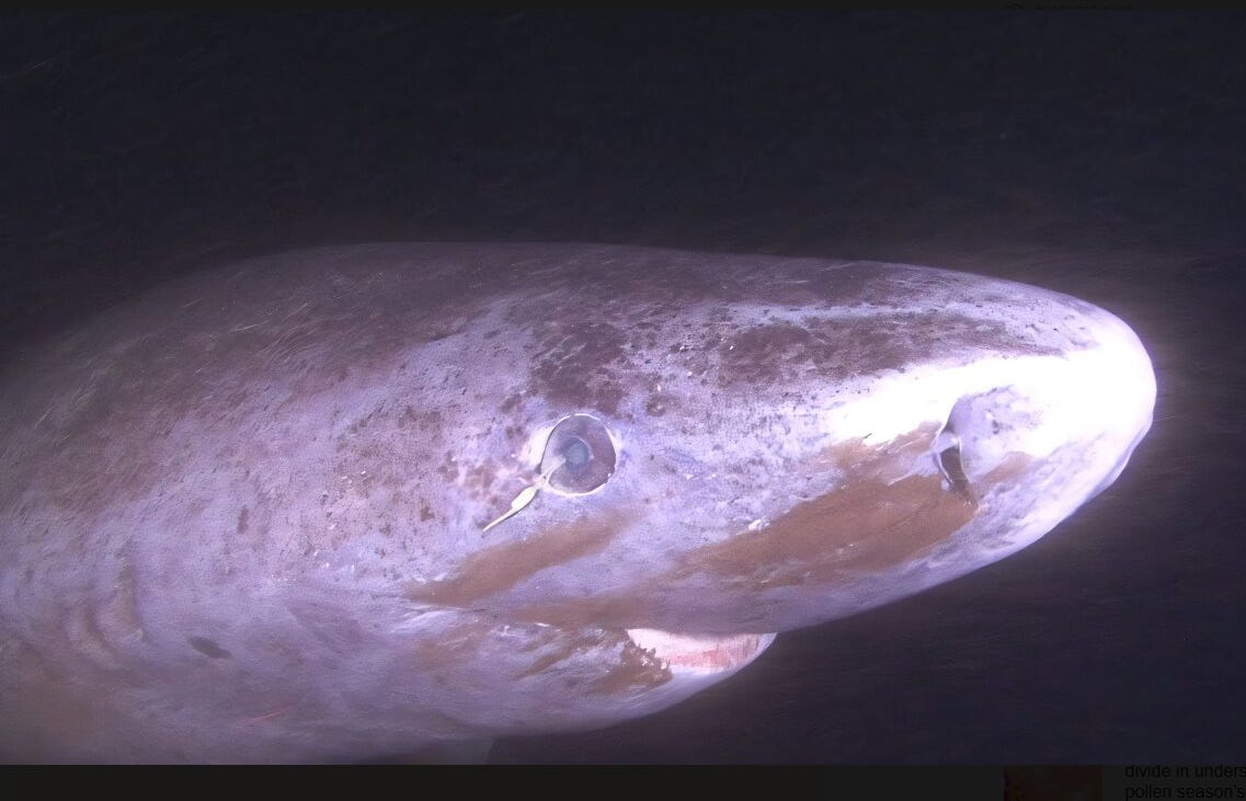 but I will take a four hundred year old Greenland shark over, hmm, 80 percent of Homo Consumopethicus (well, 95 percent maybe)