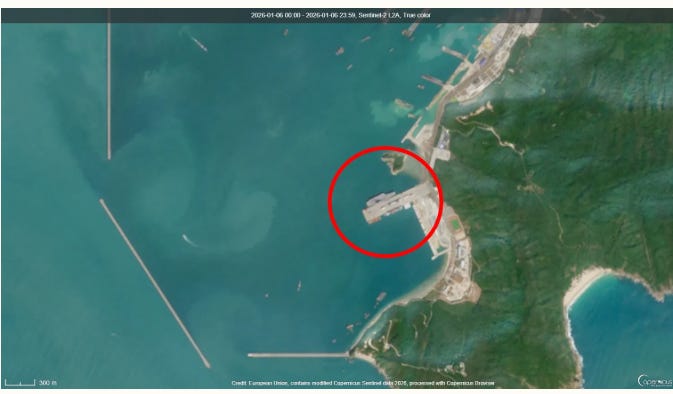An image captured on Monday by the European Space Agency’s Sentinel-2 satellites shows Yuchi Naval Base in Qingdao, northeastern China, near the Yellow Sea, hosting the Liaoning, which is homeported there, and the Fujian, which arrived last month.