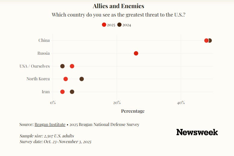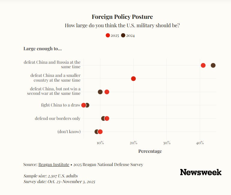 The annual Reagan National Defense Survey, released on Thursday by the Reagan Institute, polled 2,507 U.S. adults from October 23 to November 3.