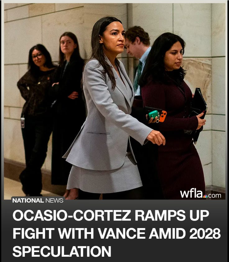 All about the fucking ELECTIONS, man. Rep. Alexandria Ocasio-Cortez (D-N.Y.) is increasingly taking aim at Vice President Vance, her possible opponent in a 2028 presidential matchup, should she choose to launch a White House bid.