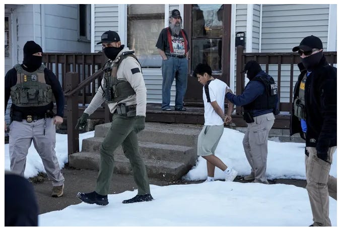 American citizens are being stopped on the streets “with no cause and are being forced to produce paperwork to determine if they are here legally,” said Mark Bruley, chief of the Brooklyn Park Police Department, which operates in a suburb north of Minneapolis.