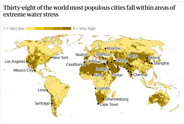 Half the world’s 100 largest cities are in high water stress areas, analysis finds