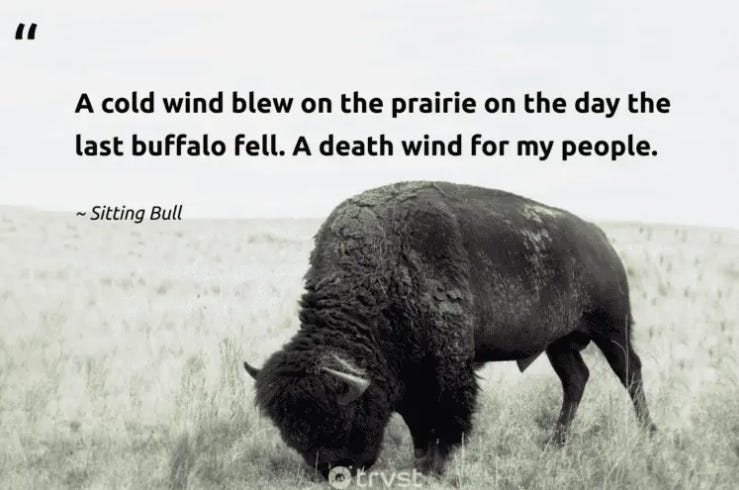 “A cold wind blew on the prairie on the day the last buffalo fell. A death wind for my people”