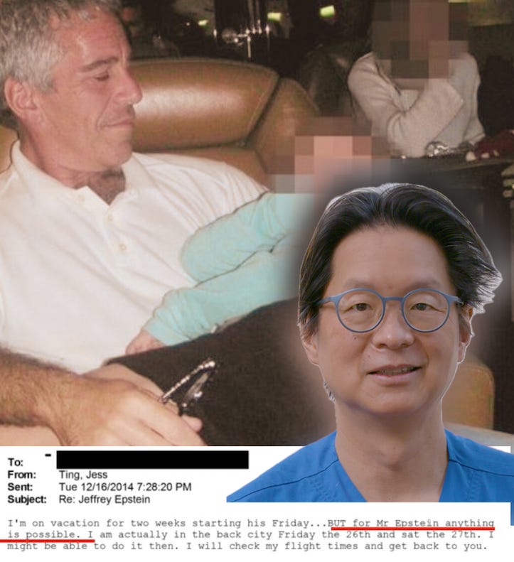 Despite this, Dr. Jess Ting was very much engaged with Jeffrey Epstein – he went out of his way to advocate for the convicted pedophile many times to Mount Sinai staff, he alerted them of Epstein’s VIP status, gushed to Epstein’s associate Lesley Groff about how he’d do “anything” for Epstein and was at Epstein’s beck and call.