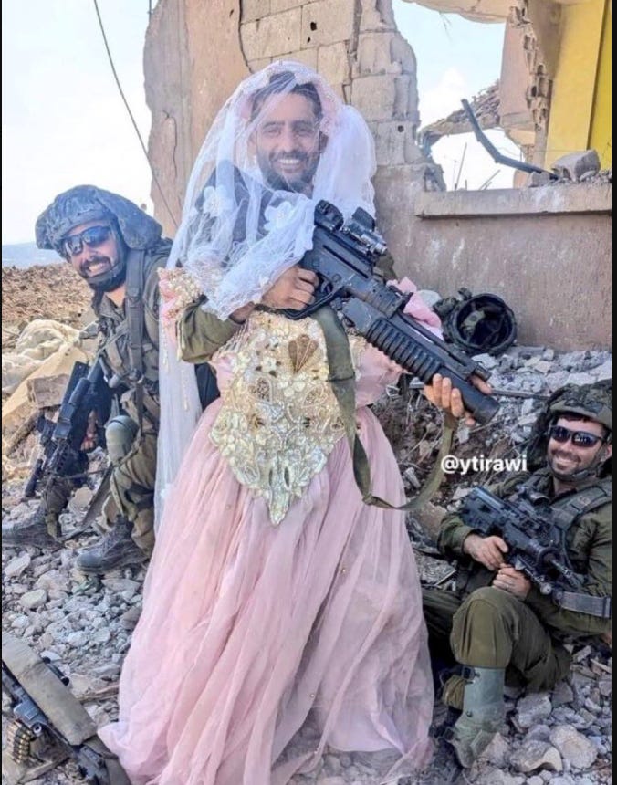 IDF soldiers wear the clothes of dead women they murdered. These rats are sick in the head.