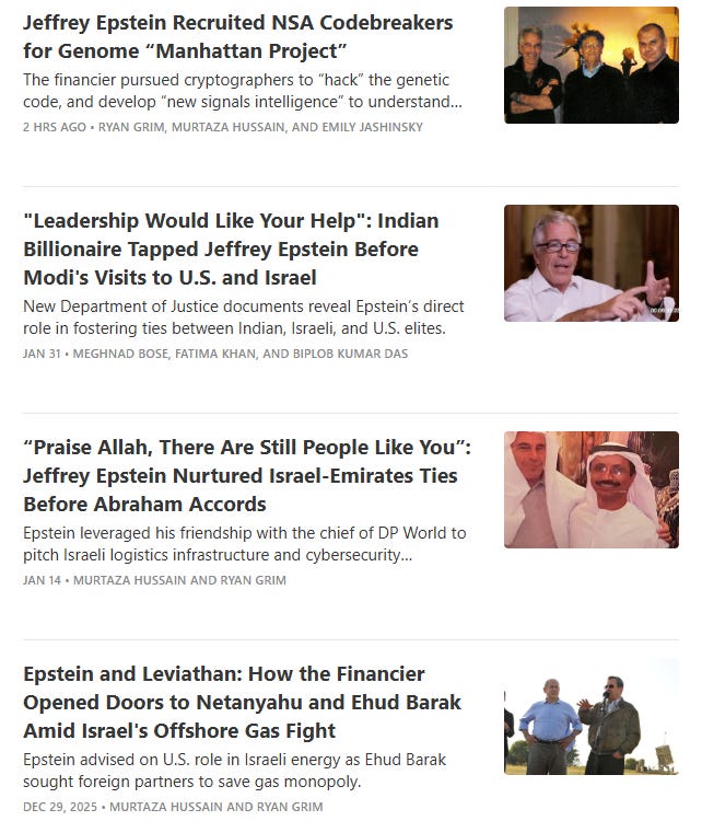 Drop Site News has spent the past several months exposing Epstein’s ties to U.S. and Israeli intelligence. Our full series is available here.