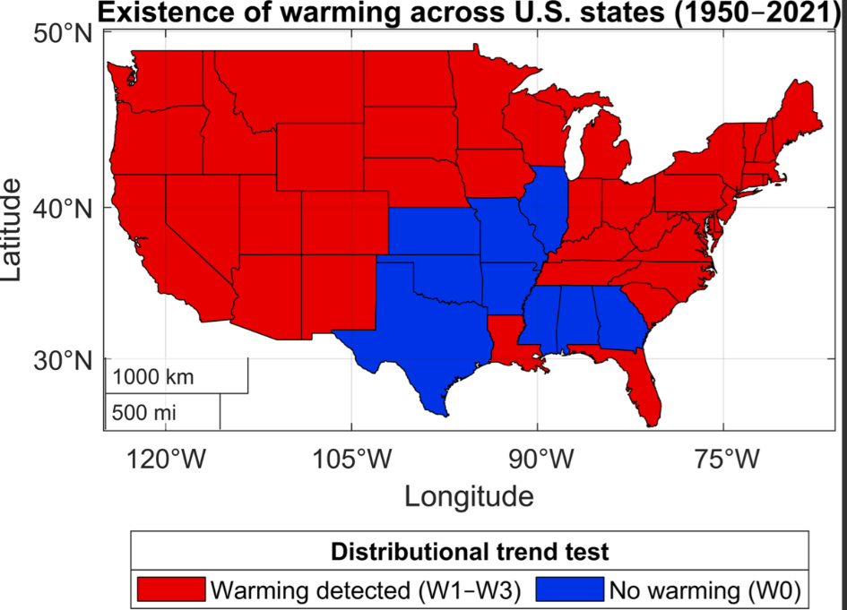 Researchers at two Spanish universities have found that 84% of the contiguous U.S. states have shown signs of warming over the last 70 or so years, which is more than previously suggested.