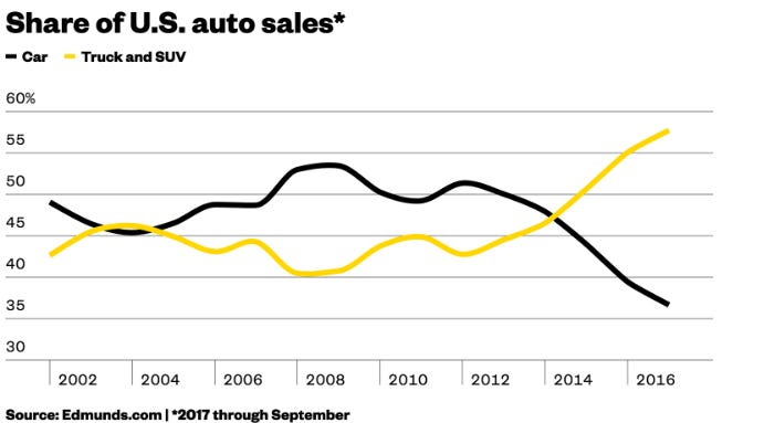 - pickup trucks, MPG 15, and they are all over the roads, and not just some fucking old fucking fart but young folk