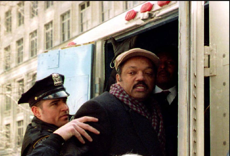 Jackson is arrested in 1993 after blocking 5th Avenue as part of a group protesting against the Clinton administration’s policy of maintaining a detention camp for Haitian political refugees who were HIV positive