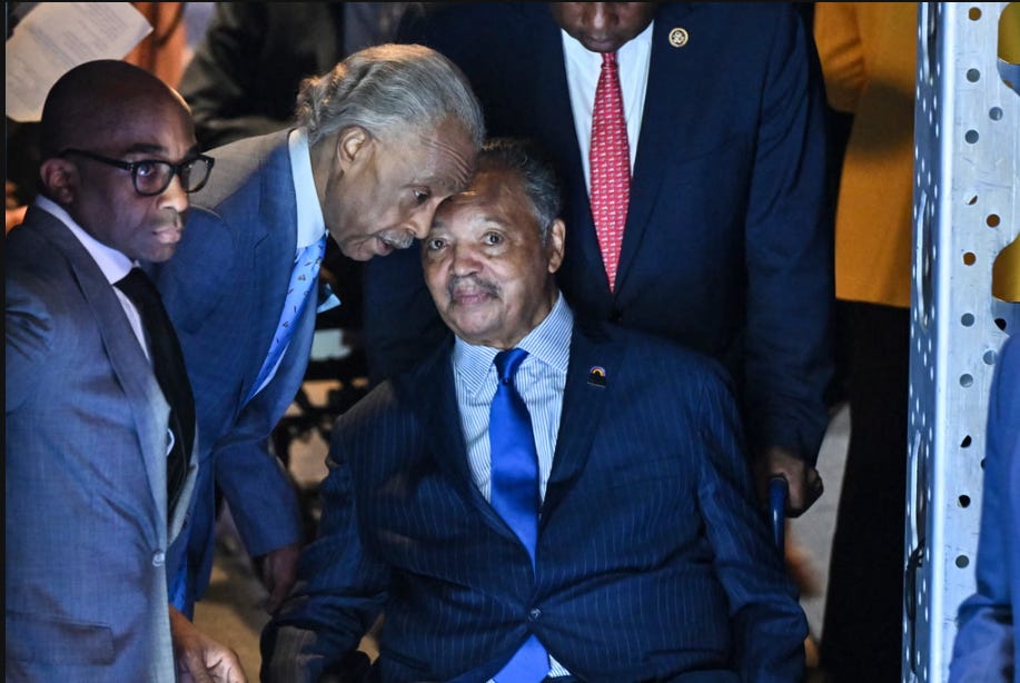 The Rev Al Sharpton (left) talks with Jackson before they go onstage at the Democratic National Convention at the United Center in Chicago in 2024