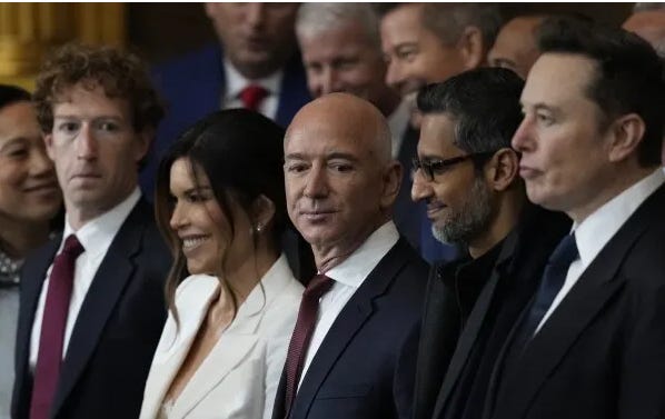 In the year of our lord, 2025, something far more insidious is going on in Silicon Valley. Leaders of Meta, Tesla, Google, Amazon and even Apple were all front and center at Trump’s Inauguration. Peter Thiel, a member of an iconic founders posse known as the PayPal Mafia, is the de facto mentor of Vice President JD Vance. Marc Andreessen, the founder of one of the world’s most influential VC Firms, went on The Joe Rogan Experience to share how happy he was with the 2024 election results.