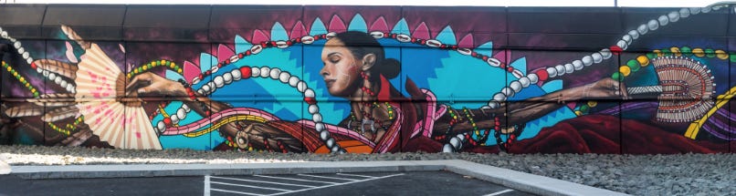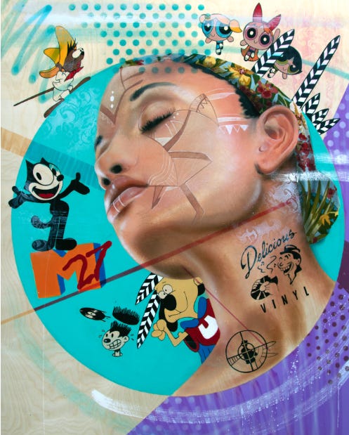 The exhibit also included art inspired by Marka27’s murals — brown-skinned people surrounded by a riot of color.