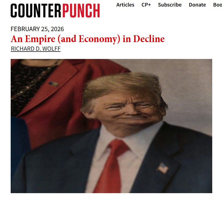 Ignoring laws, too, in the context of a declining empire and economy, only exacerbates uncertainties. They will produce policy failures and reversals in 2026 similar to those the Trump regime suffered in 2025. Already well underway, the decline sweeps away the few obstacles still in its path. Its economic, political, and cultural power already reduced, a desperate US turns on its erstwhile allies, semi-colonies, and remaining trading partners seeking tribute to offset its decline. Only its global military power seems still formidable. Yet there too, the Russian-Chinese alliance and its BRICS allies are catching up quickly.