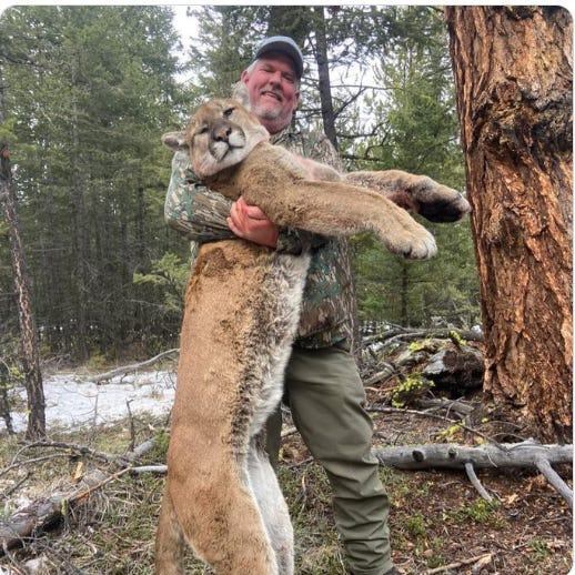 Speaking of garbage: Justin Guerry, Florida with the mountain lion he hunted. Another piece of garbage infesting the planet
