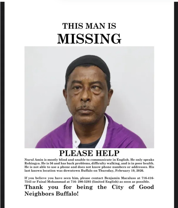 On Tuesday evening, Nurul Amin Shah Alam, a Blind, seriously ill Rohingya refugee from Burma who does not speak English, was found dead in Buffalo—five days after Border Patrol dropped him off on a street corner without notifying his family, who had moved away from the area. He was 56.
