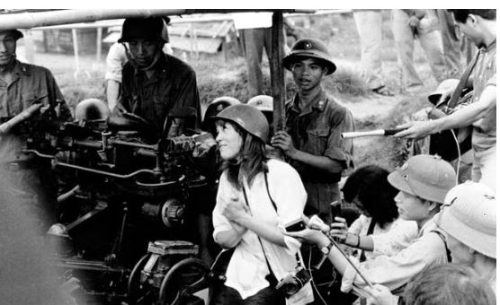 The series of photos was taken during Fonda’s visit to Hanoi, where she met with North Vietnamese troops, and was pictured sitting on an anti-aircraft gun being used to target American planes. There was outrage at the pictures, and Fonda was branded a traitor, but she has frequently expressed regret for them.