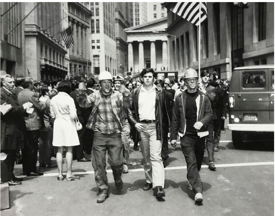 The Hard Hat Riot is a pivotal example of this divide. Construction workers, many of whom were building the World Trade Center at the time, viewed student protesters as privileged “draft dodgers” who disparaged the country while the sons of the working class were doing the fighting. During the riot, workers used tools and hard hats as weapons, while police were criticized for doing little to stop the violence.