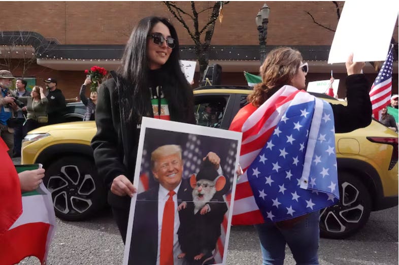 Dirty fucking AmeriKKKans: Anousha Sedighi, a professor at Portland State University, said while she understands those concerns of further U.S. military involvement in the region, she would like other protesters to understand the experiences of Iranian people.