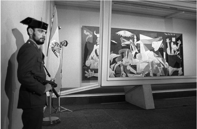 When it was first displayed in Madrid in 1981, Picasso’s painting “Guernica” was protected by armed Civil Guard officers.