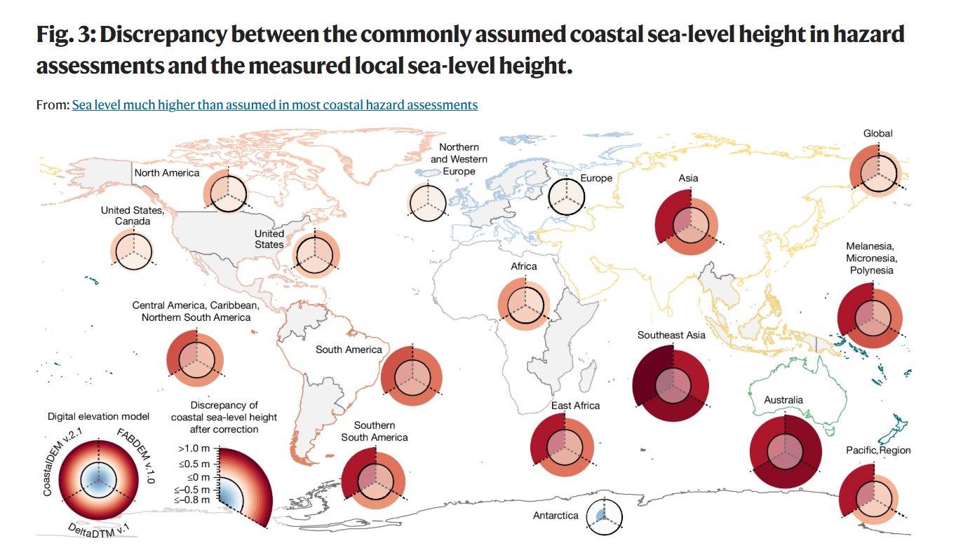 Globally, the research found ocean levels are an average of 30cm higher than previously believed, but in some areas of the global south, including south-east Asia and the Indo-Pacific, they may be 100-150cm higher than previously thought.